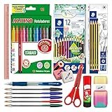 • 🎒 Set completo para la vuelta al cole – Incluye rotuladores, lápices de colores, subrayadores, bolígrafos, tijeras, pegamento, sacapuntas, goma, regla y más. Todo lo necesario en un solo...