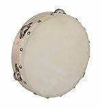 TIGER Pandereta de madera TAM98-10-BK de 25 cm, doble fila de cascabeles, natural